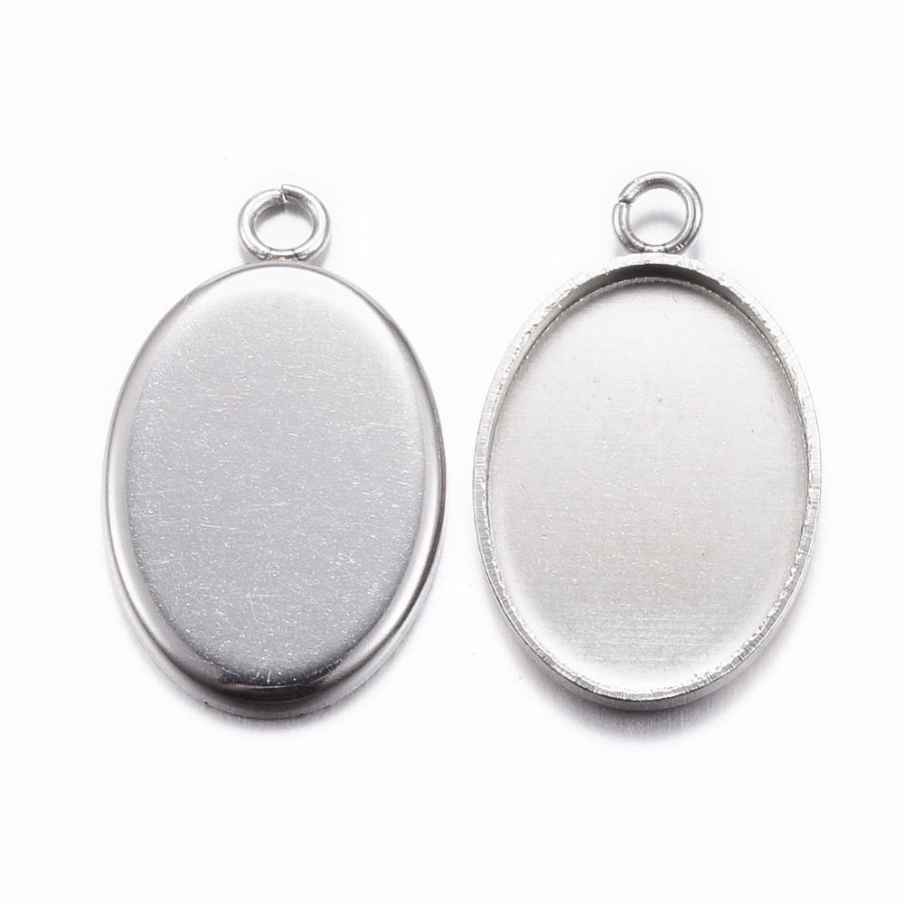 Nemesacél ragasztható medál alap - 21,5x15mm-es, 18x14mm-es kabosonhoz