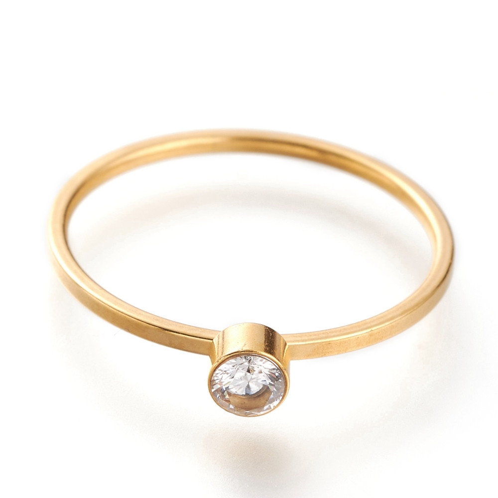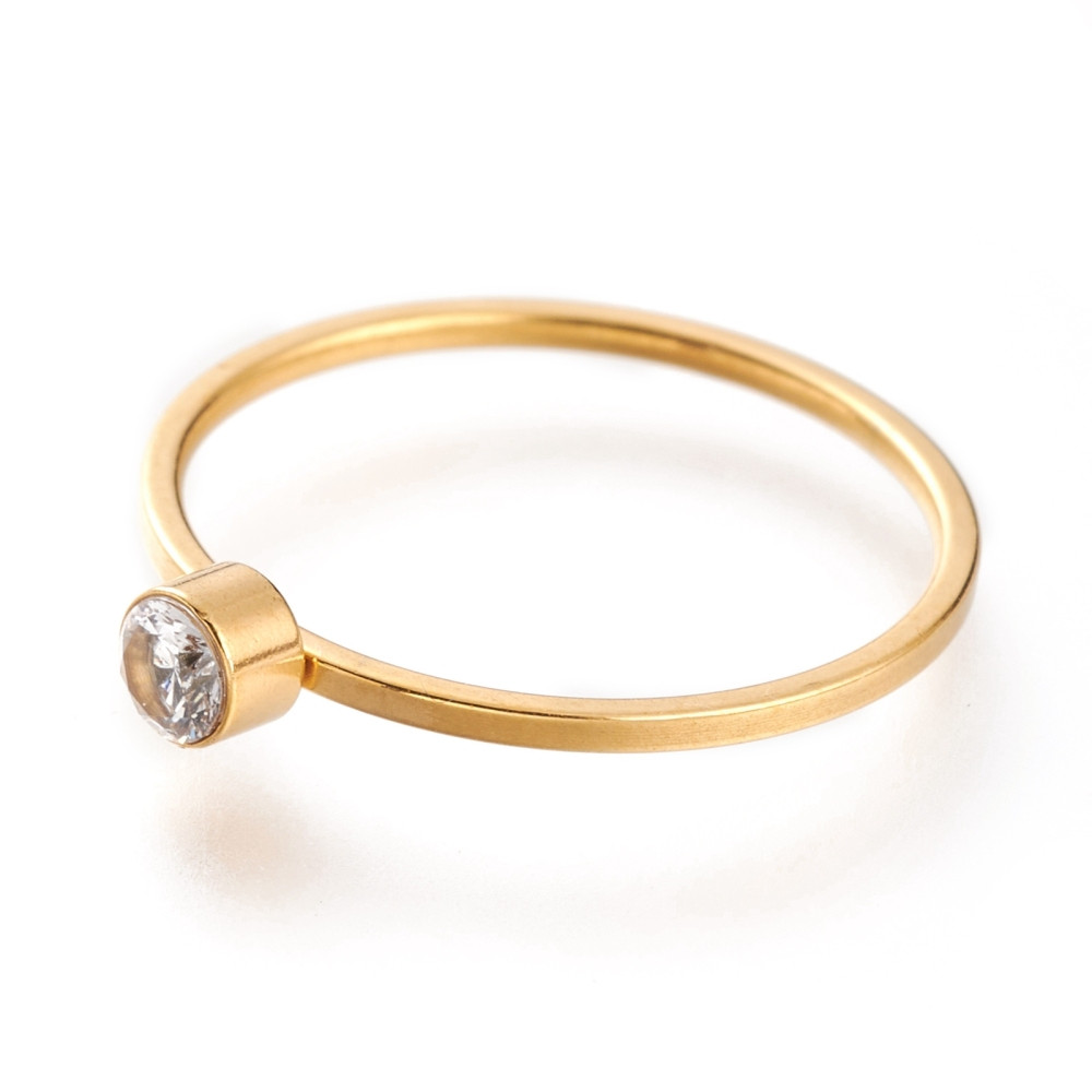 Strasszos nemesacél gyűrű, arany színű - 17,5mm